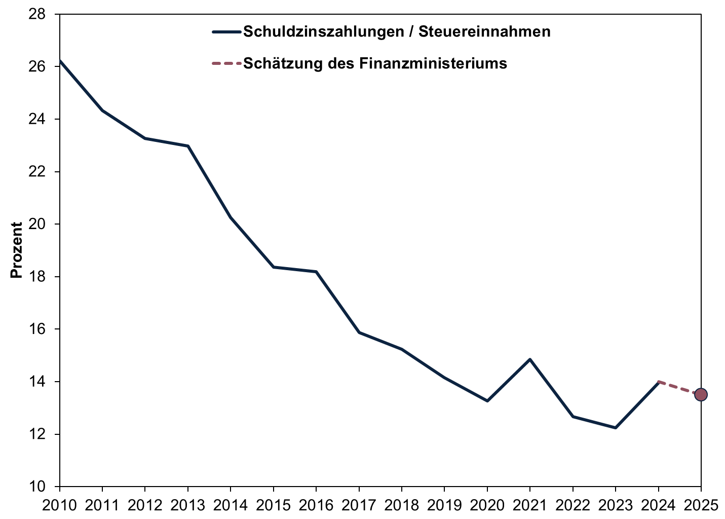 Darstellung 2: Im historischen Vergleich stellt der japanische Schuldendienst keine enorme Belastung dar