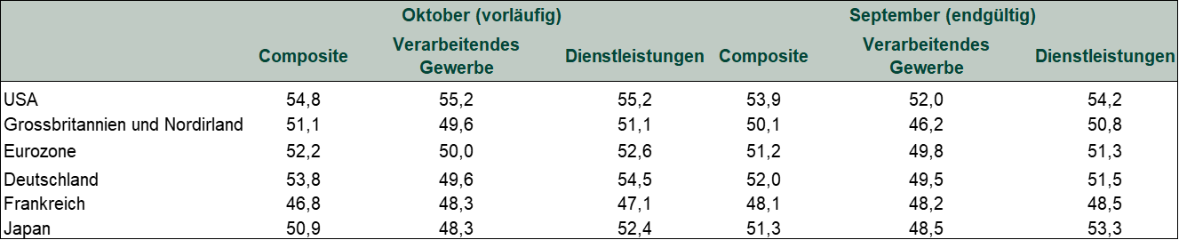 Darstellung 1: Einkaufsmanagerindizes für Oktober und September
