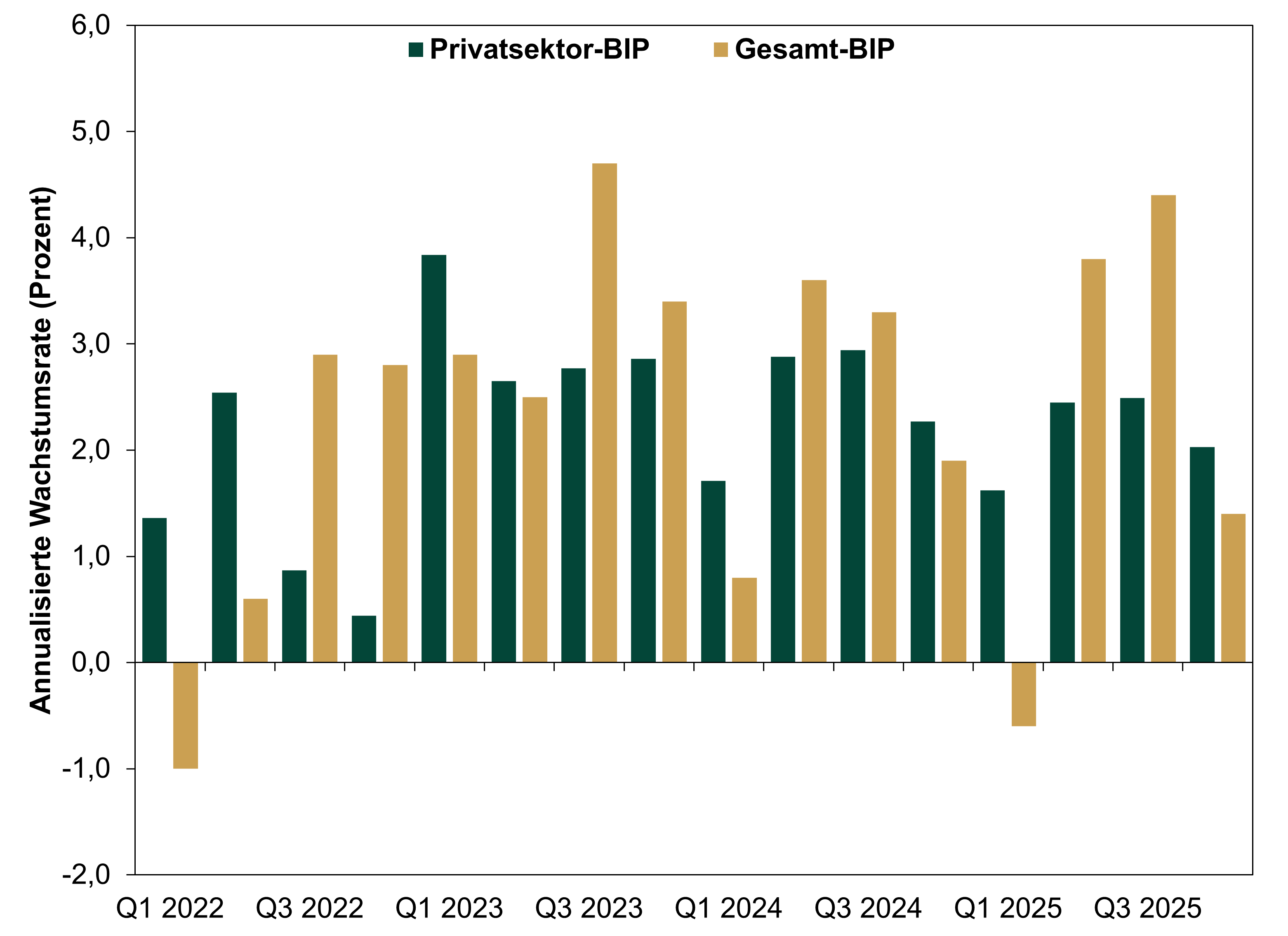 Selbstverständlich sind wir nicht grundsätzlich gegen Staatsausgaben. Wir sind lediglich der Ansicht, dass ihr wirtschaftlicher Einfluss überbewertet wird und dass die BIP-Berechnungen die Risiken einer Fehlallokation von Ausgaben verschleiern. Zum einen erwirtschaftete die Bundesregierung 2025 6,4 Prozent des BIP – weniger als Länder und Kommunen (10,8 Prozent) sowie der Privatsektor (82,9 Prozent).[vii] Zum anderen schaffen Ausgaben und Investitionen des Staates nach unserer Analyse keine neue wirtschaftliche Aktivität. Vielmehr verteilt die Regierung Steuereinnahmen an Bereiche, die sie für geeignet hält (d. h. sie bestimmt Gewinner und Verlierer). Ein Teil dieser Ausgaben kann sofort produktiv sein. Andere müssen möglicherweise mehrmals umgeleitet werden, bevor sie ihre optimale Wirkung entfalten. Unseres Erachtens verteilt der Privatsektor Ressourcen und Kapital effizienter, da seine Anreizsysteme dies gewährleisten.