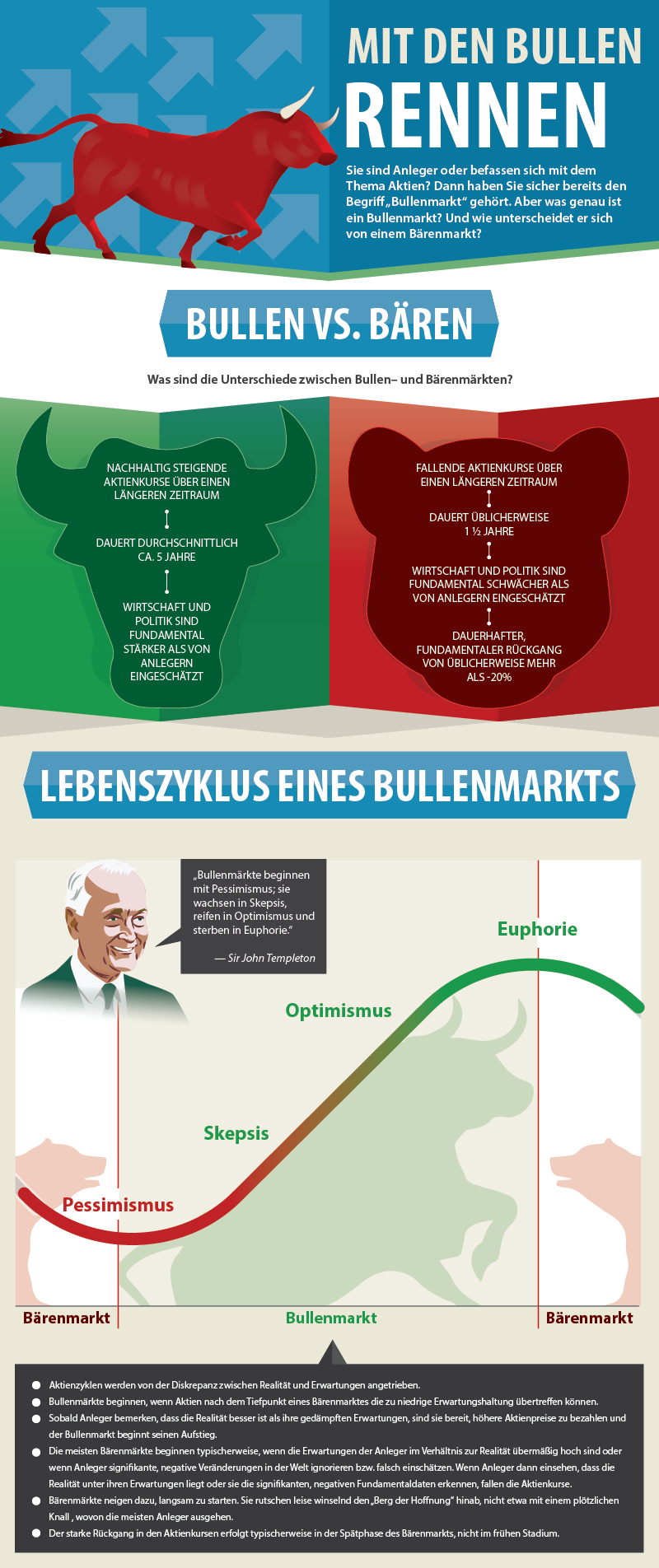 Für eine genauere Einordnung der Marktzyklen und als Anreiz, den langfristigen Anlagehorizont wieder stärker in den Fokus zu nehmen, können Sie hier in einer exklusiven Infografik, entwickelt von Fisher Investments GmbH („Fisher Investments“), mehr zu Bulle und Bär erfahren – und mit dieser Hilfe grobe Fehler bei der Geldanlage vermeiden.