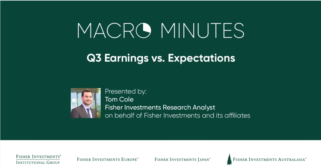 In our most recent Macro Minutes video, Fisher Investments’ Research Analyst Tom Cole reflects on the resiliency of Q3 corporate earnings despite supposedly dour outlook and discusses expectations moving into Q4.