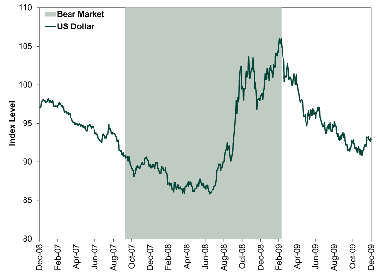 Source: FactSet, as of 5/1/2023. Nominal trade-weighted US dollar index (broad), 12/31/2006 – 12/31/2009.