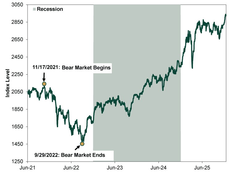 [iv] Source: FactSet, as of 1/21/2026. MSCI World Index returns with net dividends, 11/17/2021 – 9/29/2022. Presented in euros. Currency fluctuations between the euro and dollar may result in higher or lower investment returns.