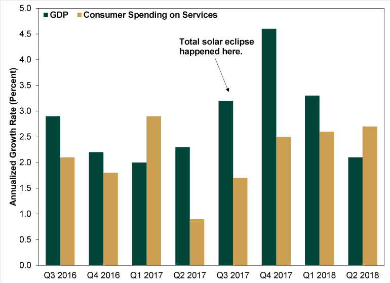 Don’t get us wrong, we love these celestial events! And the associated national cheer! But that is all this was. A fun thing that many people were able to enjoy. But probably not a Q2 GDP swing factor.