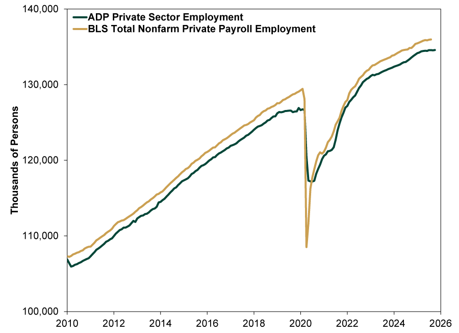 In any event, absent the last two BLS job reports, how do we know whether overall employment is rising or falling? At least on a private-sector basis, the latest October data from payroll processing firm ADP showed US companies added 42,000 workers in October. (Exhibit 3) That is no gangbusters rate, but net job growth suggests many of those laid off earlier this year may have found new positions.