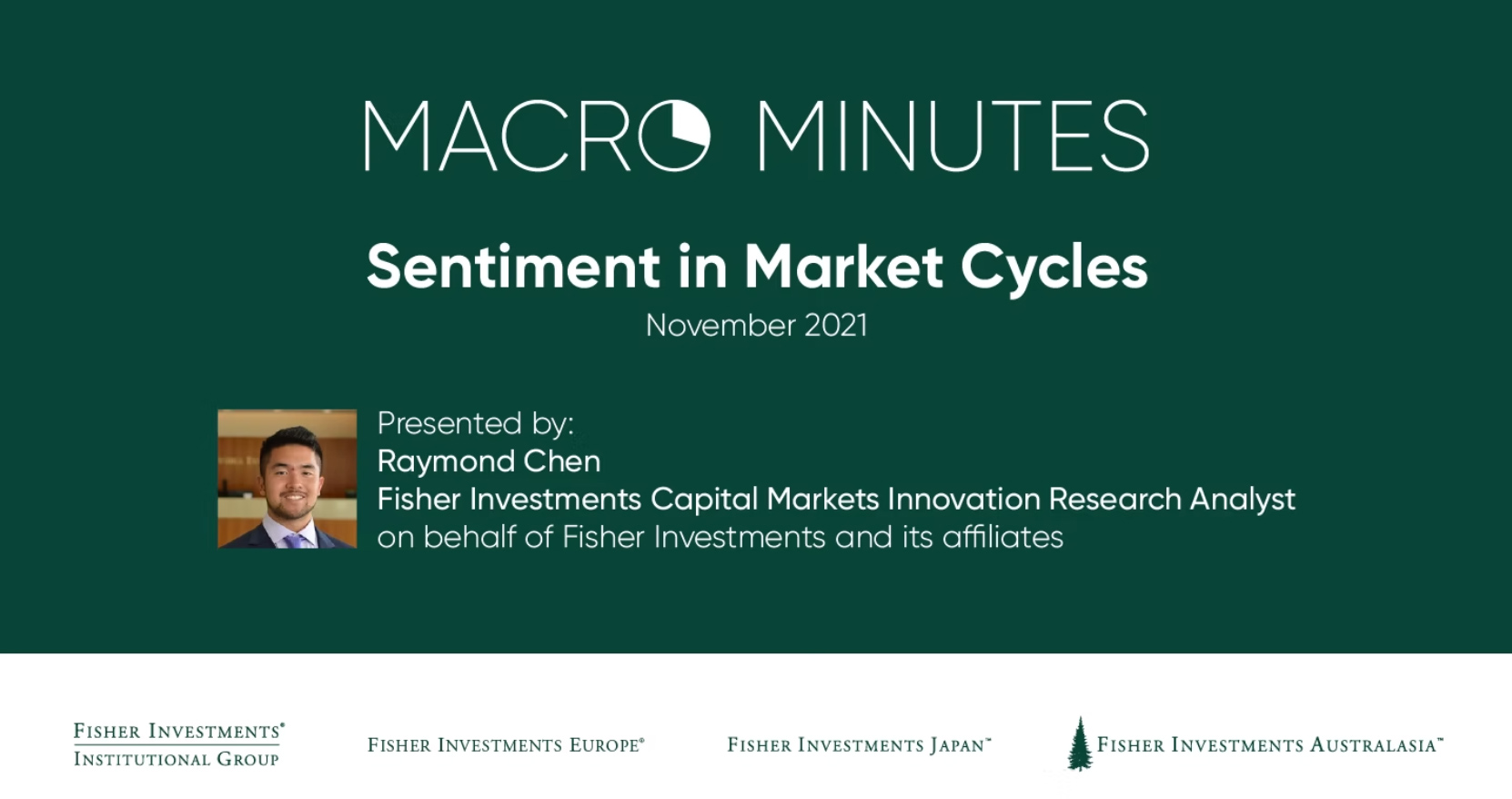 Raymond Chen: My name is Raymond Chen and I work on the capital markets innovation team in Fisher Investments Research Group. In this video, we'll discuss how investor sentiment evolves through the market cycle, provide some examples of how we track sentiment, and importantly, share our views on where investor sentiment is today.