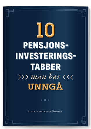 Målet vårt med å dele disse «tabbene» er at du skal kunne unngå dem. Det er også en mulighet til å vise frem hvordan vi tenker om pengestyring. Fisher Investments og dets datterselskaper bruker en egenutviklet investeringstilnærming basert på empiriske data og nøye analyser – selv når det ser ut til å gå imot tradisjonelle metoder. Hvis du likte det du har lest, har spørsmål eller bare vil vite mer, må du ikke nøle med å ringe oss på 800 19 639. For kvalifiserte investorer med 3 millioner kroner eller mer i investerbare eiendeler tilbyr vi gratis porteføljeevalueringer. Disse tjenestene er selvsagt uforpliktende.